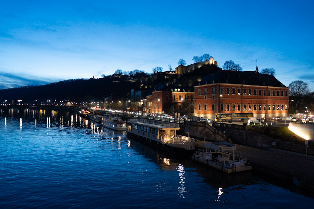 Série de photos sur la Citadelle de Namur éclairée, depuis le boulevard de la Meuse réalisée par Valérie Decock de l’atelier VADE + Mockup
